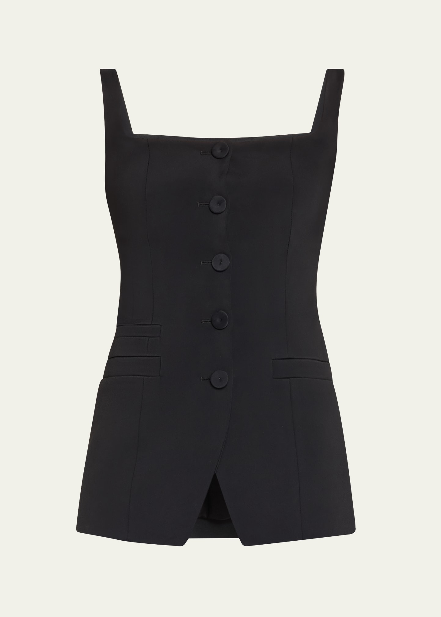 Fabric: Mid-weight, stretch suiting. Square neckline. Sleeveless. Button placket. Welt front pockets. Shell: 96% viscose/4% elastane. Lining: 60% viscose/35% cupro/5% elastane. Dry clean. Made in Italy. Measurements: Measurements from size 38 Length: 26.5in / 67.0cm, from shoulder