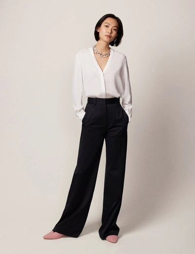 ANOTHER TOMORROW V-neck Button-front Blouse In White