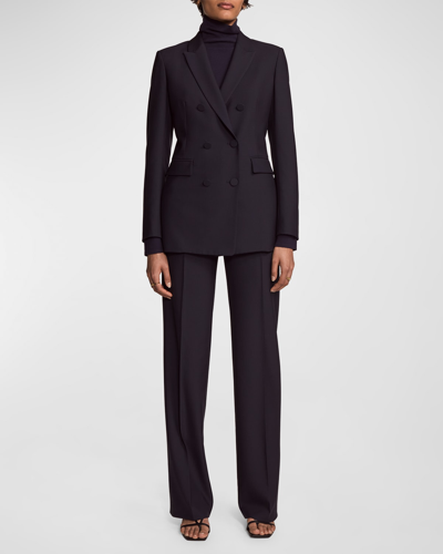 ANOTHER TOMORROW Wool Double-breasted Blazer Jacket In Navy