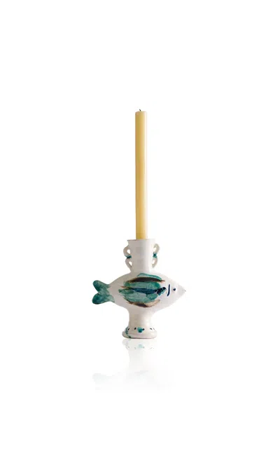 Hand-thrown in Fayoum; the Samak Candle Holder is a ceramic candleholder like no other — its base sculpted into the body of a fish; fins painted in sweeping strokes of green and blue. Functional and full of character; it casts a warm glow that makes the whole room feel alive