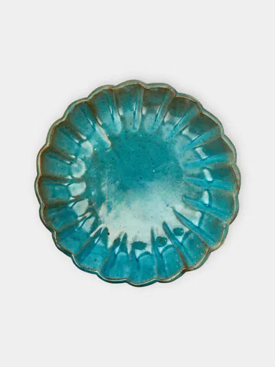 Every piece from Anūt Cairo's Fayoum Pottery is one of a kind, revealing the individual hand of each ceramicist. The Scallop dinner plates were handmade by potter Mohamed Mahmoud using clay from Aswan on the banks of the River Nile. Uniquely hand-painted with a turquoise wash, they're an eye-catching way to serve desserts or afternoon treats.