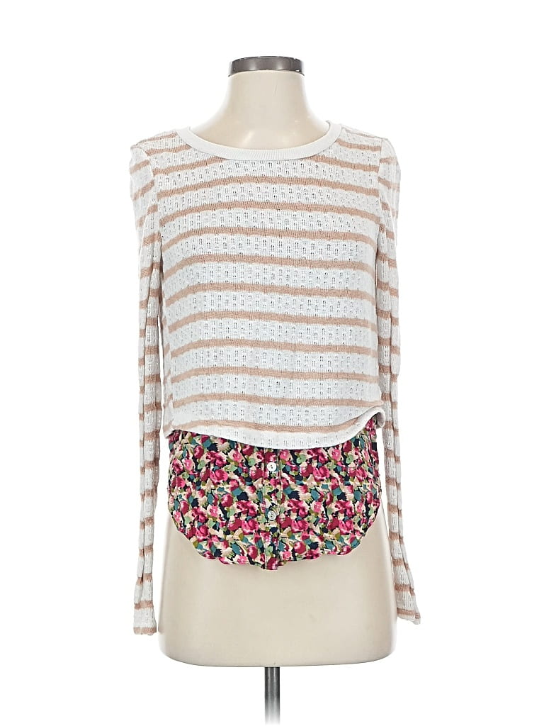 Anthropologie Pullover Sweater, Size: X-Small. Item Details: Ivory, Square Neckline, 3/4 Sleeve, Women's Tops, Polyester/Rayon/Spandex