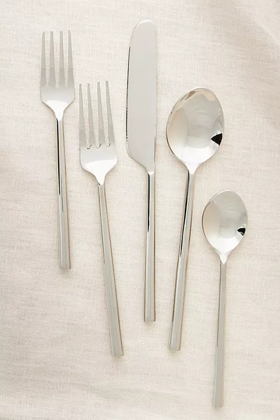 Perfect for family meals and special occasions, this stainless steel flatware set lends a touch of modern minimalism to your tablescape with its elegant profile. Samson Flatware Set by Anthropologie in Silver