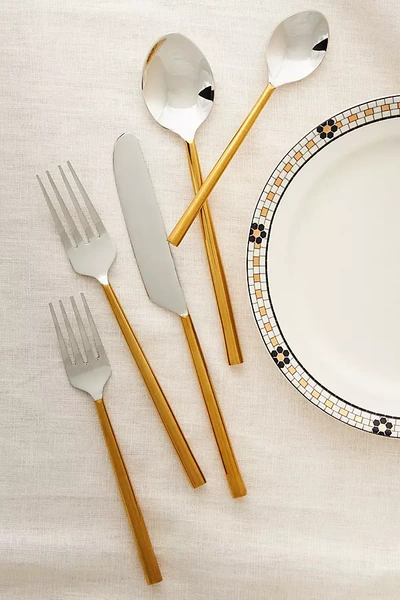 Perfect for family meals and special occasions, this stainless steel flatware set lends a touch of modern minimalism to your tablescape with its elegant profile. Samson Flatware Set by Anthropologie in Yellow