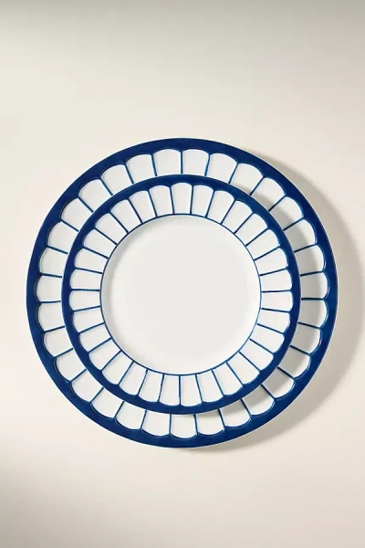 Set of four side plates Handpainted glazed stoneware Dishwasher and microwave safe Imported Boulevard Latte Stoneware Side Plates, Set of 4 by Anthropologie in Blue