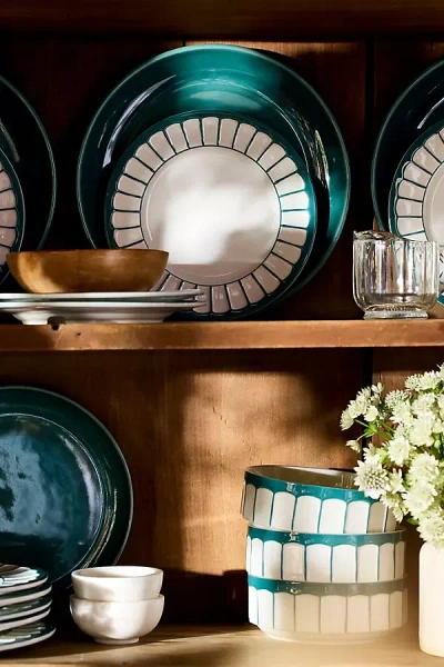 ANTHROPOLOGIE The Latte Stoneware Side Plates, Set Of 4: Boulevard Edition In Green