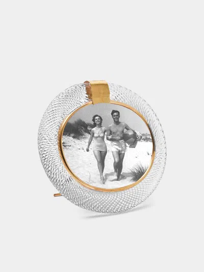 Twisted Murano glass frames were all the rage in mid-century design, mastered by the likes of Venini, Barovier & Toso, Tommaso Barbi, Seguso Viro and more. Murano glass maestros utilized the ancient torciglione technique to create the rich, rope-like effect, and added ribbed brass accents around the top and inner edges. Please note, this item is a truly original vintage piece with slight imperfections and distinctive characteristics that add to its charm and celebrate its unique history.