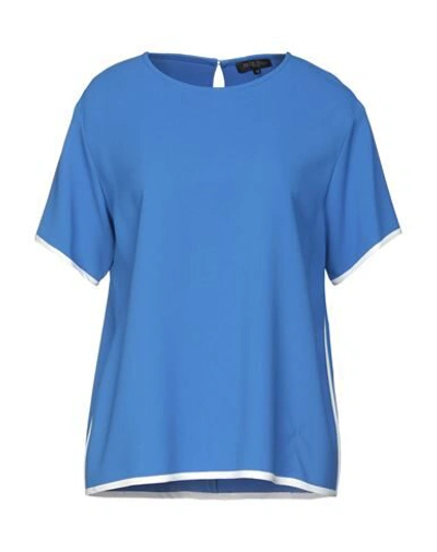 ANTONELLI Blouses. crepe, no appliqués, solid color, rear closure, button closing, short sleeves, round collar, no pockets, stretch. 70% Viscose, 26% Acetate, 4% Elastane