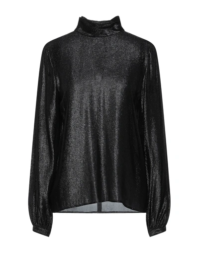 chiffon, lamé, frills, solid color, turtleneck, long sleeves, buttoned cuffs, button closing , Color: Black , Size: 12