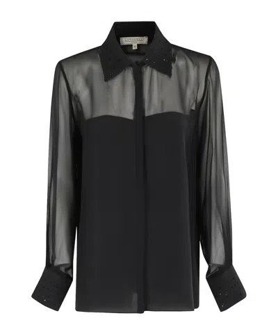 Long sleeves with concealed front fastening and button cuffs.