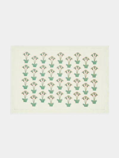 Nile Lotus Hand-printed Linen Placemats (set Of 4) Malaika Abask Gift Set In Green
