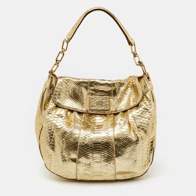 Pre-owned Metallic Gold Python Flap Shoulder Bag