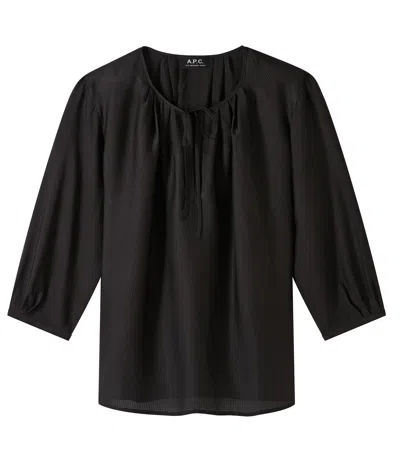 A.P.C. Women's blouse. - Fitted cut.- Keyhole collar ties with drawstrings.- Elbow-length sleeves.- Material in alternating shiny and matt stripes.