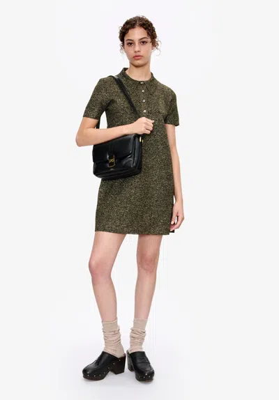 - Straight, fitted cut. - Mid-thigh length. - Polo shirt collar with four mother-of-pearl buttons. - Fitted sleeves.
