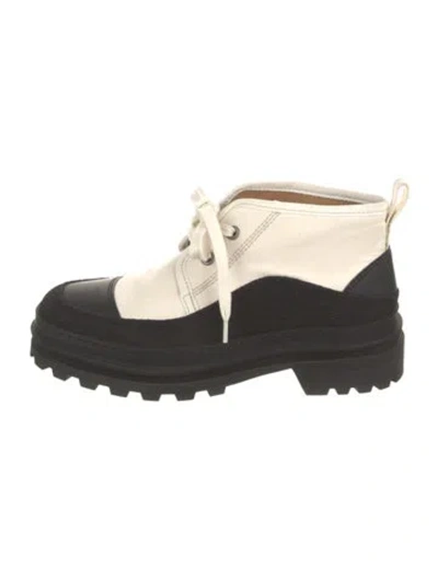 A.P.C. Canvas Ankle Lace-Up Boots Black & White Round-Toes Lace-Up Closure at Uppers Includes Box | A.P.C. Canvas Lace-Up Boots in Black/White, Women's IT 37 | 7