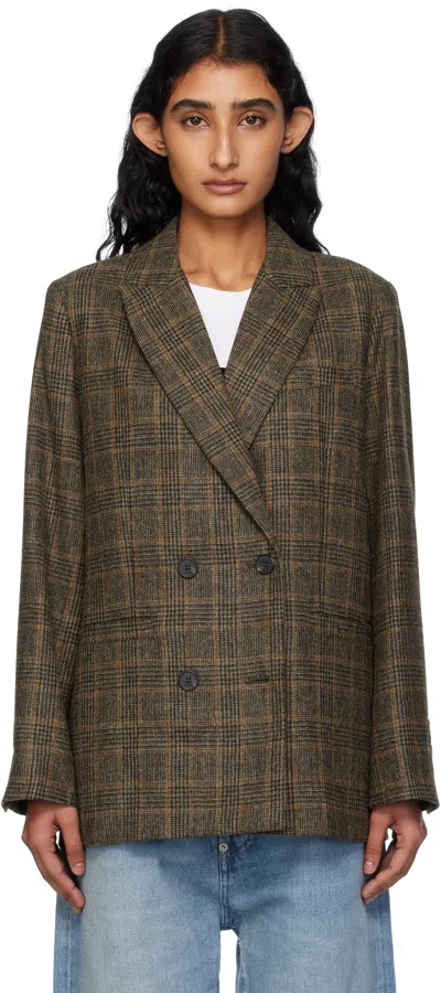 APC A.p.c. Brown Plaid Double-breasted Lucy Jacket