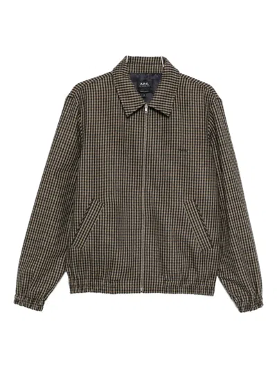 APC Checkered Jacket With Collared Neck And Pockets In Brown