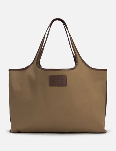 A.P.C. Harper Shopper Tote Made of cotton canvas Two leather-trimmed handles Hand or shoulder carry One interior pocket Leather patch with logo embossed in front Unlined Color: Hazelnut