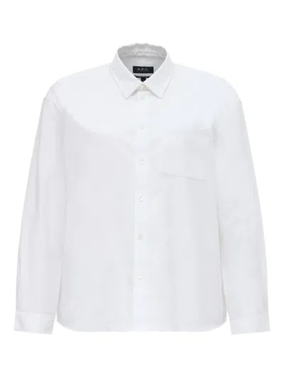 Weiß Knopfverschluss vorne aufgesetzte Brusttasche klassischer Kragen lange Ärmel