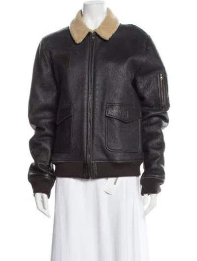 Pre-owned Leather Bomber Jacket In Gray