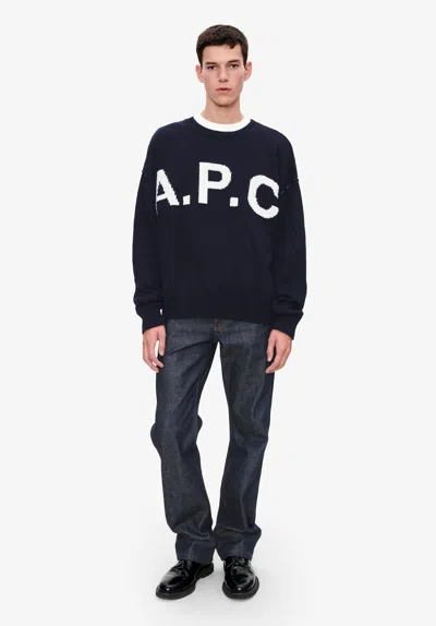 Men's Logo A. P.c. Sweater Size: Medium In Dark Navy Blue In Multi