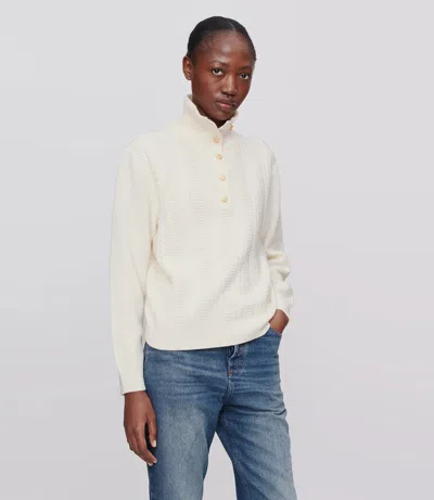 - Straight cut. - High collar with goldtone buttons decorated with a raised anchor. - Cable knit details and stripes on the body. - 100% RWS wool: Responsible Wool Standard, a voluntary standard that attests to wool production that respects animal welfare.
