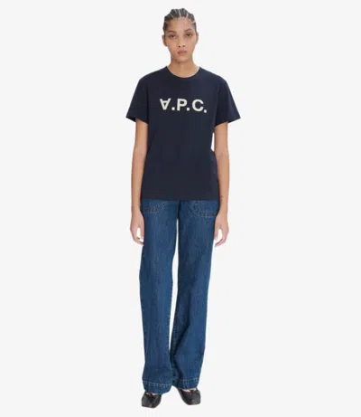 A.P.C. Women's jeans. - Straight cut, envelops the hips.- Rather high waist.- Wide, long leg.- Zip fly.- Topstitched pocket outlines.- Large topstitched hem.- Tone-on-tone topstitching.- Caramel topstitching.- 100% organic cotton.