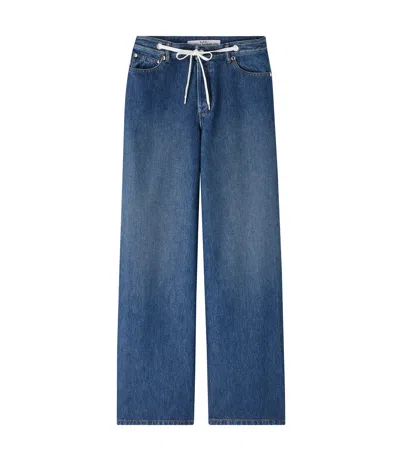 - Straight cut. - High rise. - Flared leg. - Drawstring extends from two silvertone metal eyelets at the waist in front. - Silvertone metal rivets, the signature of the line. - Stonewashed effect, like that of A.P.C. 'Butler' jeans. - Caramel and blue topstitching. - 100% cotton derived from organic farming.