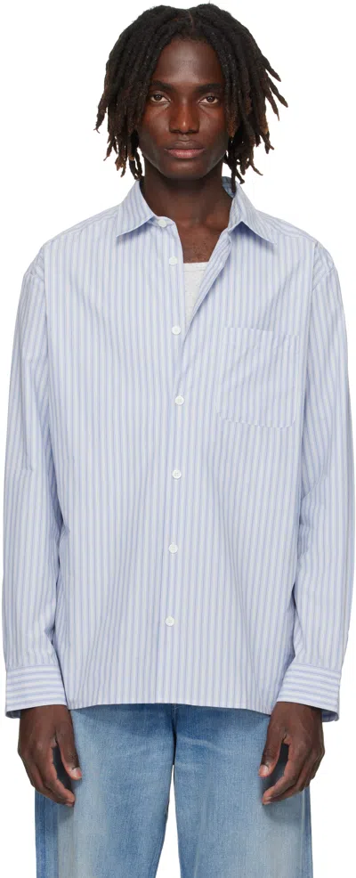 Classic shirt in white cotton with light blue stripes from A. P. C. , with classic collar, chest pocket, straight hem. Composition: 100% CO-Coton