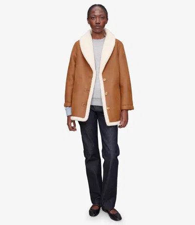 - Soft, dense material. - Faux fur interior. - Straight cut. - Large tailored collar. - Two large pockets. - Button closure.