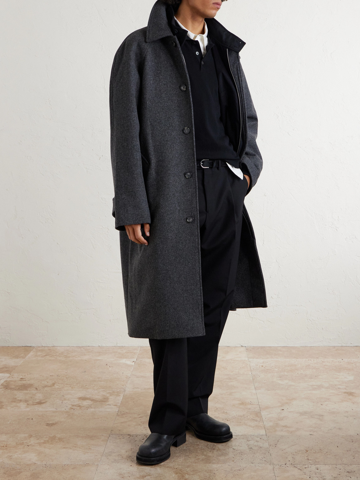 A.P.C.'s coat is made from pure wool, so you can count on it keeping you warm in single-digit temperatures. It's cut in a comfortable profile with relaxed raglan sleeves and has a full lining for smooth layering. Pop your collar and secure it with the buttoned throat latch to keep out the chill.