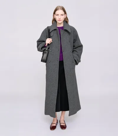 The A. p. c. Lea Coat Is A Timeless Outerwear Piece, Crafted From Premium Italian Wool In A Soft Heather Grey Tone. Designed In An Oversized, Ankle-length Silhouette, It Features A Large Classic Collar With A Buttoned Flap, Side Pockets, And A Removable Belt To Define The Waist. Faux Horn Buttons Add A Refined Finishing Touch To This Versatile Cold-weather Essential. Premium Italian Wool Fabric Large Classic Collar With Buttoned Flap Double Breasted Button Closure Two Side Pockets Removable Waist Belt Oversized Fit Ankle Length Alessandra Is 1,75 M And Wears Size 36 Composition: 100% virgin wool