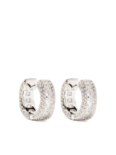 silver-tone silver plated pavé setting small hoop design T-bar fastening for pierced ears These earrings come as a pair.