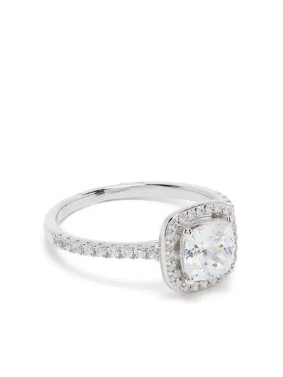 small square pavé ring from APM Monaco featuring silver-tone, cubic zirconia, sterling silver, inset gemstone, polished finish and slip-on style.