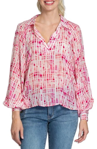 APNY Half-placket Pullover Blouse In Pink Multi