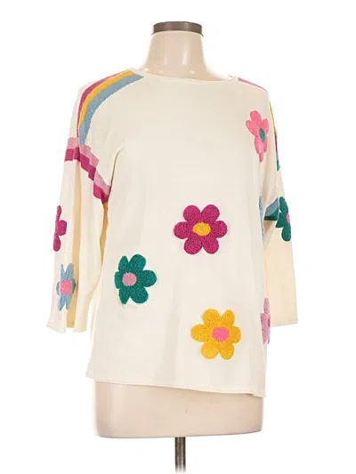 AP.NY Pullover Sweater, Size: Large. Item Details: Ivory, Floral Pattern, Square Neckline, 3/4 Sleeve, Women's Tops, Rayon/Polybutylene Terephthalate (Pbt)