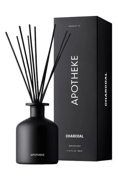 APOTHEKE Charcoal Reed Diffuser in Black. APOTHEKE Charcoal Reed Diffuser in Black. A reed diffuser made with essential and perfume-grade fragrance oils featuring the rich, addictive scent of Charcoal in a black glass vessel with a smooth matte finish for a modern and timeless look.. Cedarwood and sandalwood are combined with smoky amber and oud to build a broody, full-bodied fragrance. Fragrance Family: Exotic-Wood. Premium, alcohol-free formula with a proprietary blend of essential and perfume-grade fragrance oils. Cruelty-free. 6.7 fl. oz. / 198 mL. Remove plug from bottle and untie the reed sticks.. As the oil is absorbed by the reeds, fragrance will begin to diffuse.. Flip the reeds weekly or as desired to intensify fragrance diffusion.. APOR-WA4. AP04-CH.