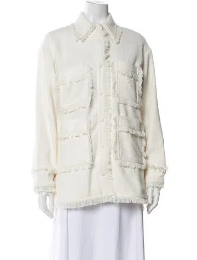 Apparis Coat Neutrals Fringe Trim Accent & Pointed Collar Short Patch Pockets & Snap Closure Fit: Coats by Apparis typically fit true to size. | Apparis Coat in Neutrals, Women's XXS