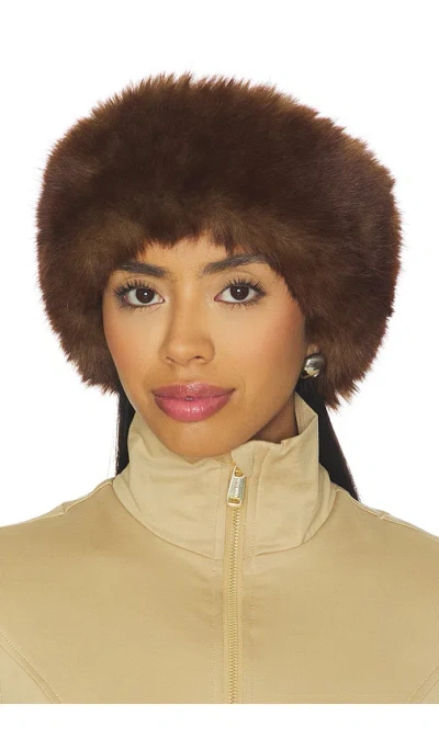 Apparis Eleni Mink Headband in Brown. Apparis Eleni Mink Headband in Brown. 100% polyester faux fur (mink-look). Imported. Headband + ear muff hybrid design (wrap style). Fully lined for comfort. Flexible internal band to fit most head sizes. Plush, high-pile finish with mink tone. Spot clean only. APRS-WA75. F5AC383MNK. Quickly taking over the fashion world with their popular faux fur jackets, Apparis is dedicated to 100% vegan and cruelty free pieces. Starting off in a Brooklyn pop-up shop, co-founders Amelie Brick and Lauren Nouchi quickly became an overnight success. Classic pieces with a vibrant twist are the heart and soul of the collection. The vibe? Effortlessly chic Parisian meets New York City edge. What was once a small faux fur outerwear brand, has now expanded across multiple new product categories, including accessories, knitwear, and home. Apparis believes in a world where fashion is sustainable, ethical, and empowering.