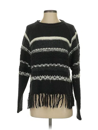 Aqua Pullover Sweater, Size: Small. Item Details: Black, Stripes Pattern, Boatneck, Long Sleeve, Fringe, Women's Tops, 100% Acrylic
