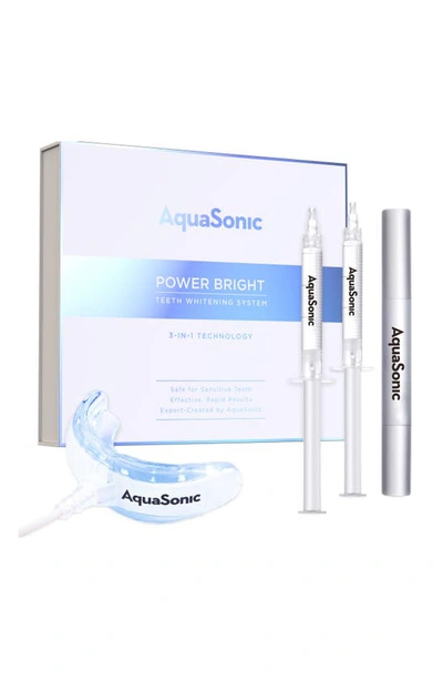 What it is: Whiten your teeth up to 10 shades with the revolutionary Power Bright teeth-whitening system from AquaSonic.What it does: This three-in-one treatment combines a professional teeth-whitening gel with an activating high-intensity blue light, and a teeth-whitening pen for whitening on the go. It breaks down stubborn stains for a whiter, brighter, more confident smile. Use for 16 minutes, once daily, for noticeable results in days and complete results in two weeks.Set includes:- LED blue-light mouthpiece with USB- iPhone and Android adapters- Two syringes of whitening gel- Whitening pen- Shade tracker and user manualHow to use: Simply apply gel to the mouthpiece, bite down on it, connect it to your phone, and turn the light on. It's that easy. The light will shut off automatically after 16 minutes, so you can set it and forget it. Take your whitening pen in your purse, bag or suitcase for whiter teeth anytime, anywhere. Track your progress using the included Shade Tracker card to measure the remarkable results. Imported