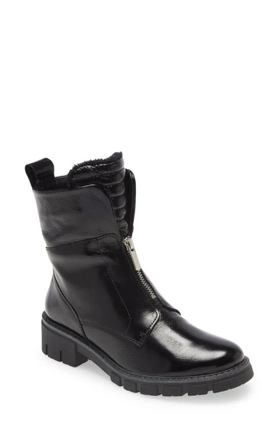 Streetwise and supportive, this zip-up leather bootie features trapunto-stitch detailing and a foam insert under the ball of the foot to maximize comfort. 1 3/4" heel; 3/4" platform (size 6) 6 1/2" shaft Front- and side-zip closures Cushioned footbed with arch support Leather upper/textile and synthetic lining/synthetic sole Imported