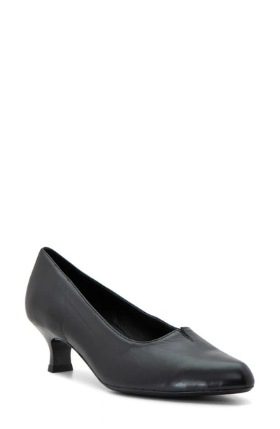 An almond toe and kitten heel balance a versatile pump set on a cushioned footbed perfect for desk-to-dinner wear.