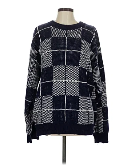 Architect Pullover Sweater, Size: Medium. Item Details: Blue, Checkered/Gingham Pattern, Crew Neck, Long Sleeve, Flannel, Women's Tops, Ramie/Cotton