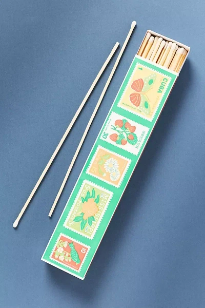 Garden Match Box: Real Fun, Wow! is back with more statement designs. This time, Daren Thomas Magee is thinking about food, drawing inspiration from nature and vintage food packaging. His bold, mural-style imagery and insightful words come together in this garden-themed long matchbox. Stamp Match Box: A whimsical collection of butterflies, birds, and flowers is brought to life by Ariane Butto. Ariane is a Parisian illustrator and a dear friend to Archivist, with a romantic style, bright color palette, and joyful designs. Long Spring Match Box by Archivist in Green at Anthropologie
