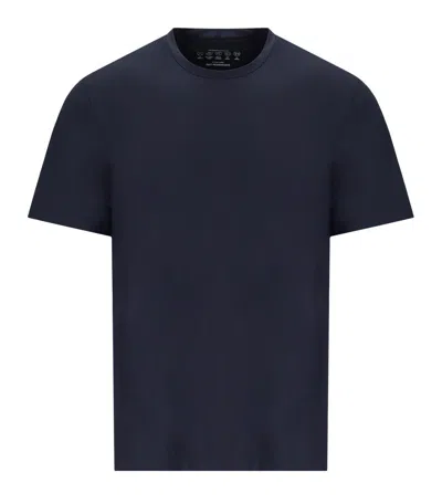 Archivium T-shirt in blue stretch technical fabric with a classic crew neck. No ironing required and offers a slim fit. Composition: 76% polyamide, 24% elastane