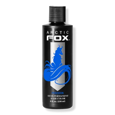 HAIR COLOR POSEIDON. Benefits: Cruelty-Free. Semi-Permanent. Hydrating. Zero Damage. No Harsh Chemicals (Peroxide, Ammonia, or PPD). Vegan. Features: Arctic Fox Poseidon is a vibrant, medium true blue so make some serious waves with this mythical shade.. For the most vivid results, this oceanic color should be applied to hair that has been pre-lightened to a cool-toned level 8 or lighter.. Always do a patch and strand test before coloring.. :