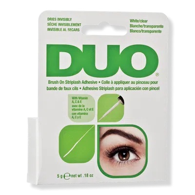 DUO BRSHON ADHESIVE W VITAMINS LGHTCLR. Benefits: All day wear. Safe for contact lens wearers and sensitive eyes. Features: Vitamins A, C and E. Formulated Without: Latex Free. Formaldehyde Free.
