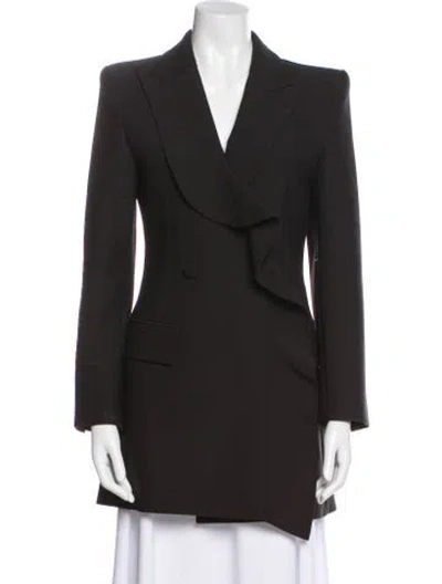 Area Blazer Black Ruffle Embellishment & Pointed Collar Flap Pockets & Button Closure Size not listed, estimated from measurements. Fit: Jackets by Area typically fit true to size. | Area Blazer in Black, Women's S