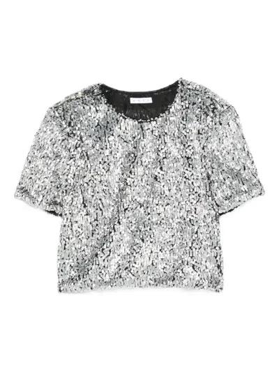 AREA Sequined Short-sleeved T-shirt In Silver